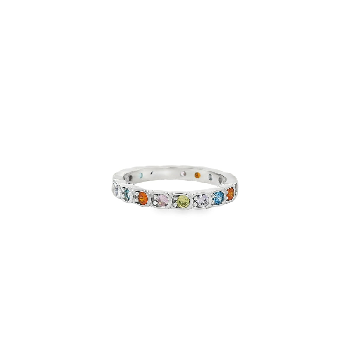 MULTI-COLOR CUBIC ZIRCONIA STERLING SILVER RING